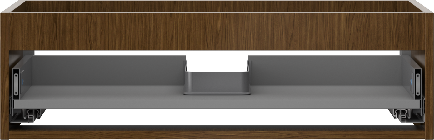 Der Ausschnitt in der Schublade ist so gestaltet, dass er den Siphon aufnehmen kann, der für Waschbeckeninstallationen erforderlich ist. Dadurch kann das Möbelstück voll funktionsfähig montiert werden, ohne auf den Platz in der Schublade zugunsten der Installation verzichten zu müssen.