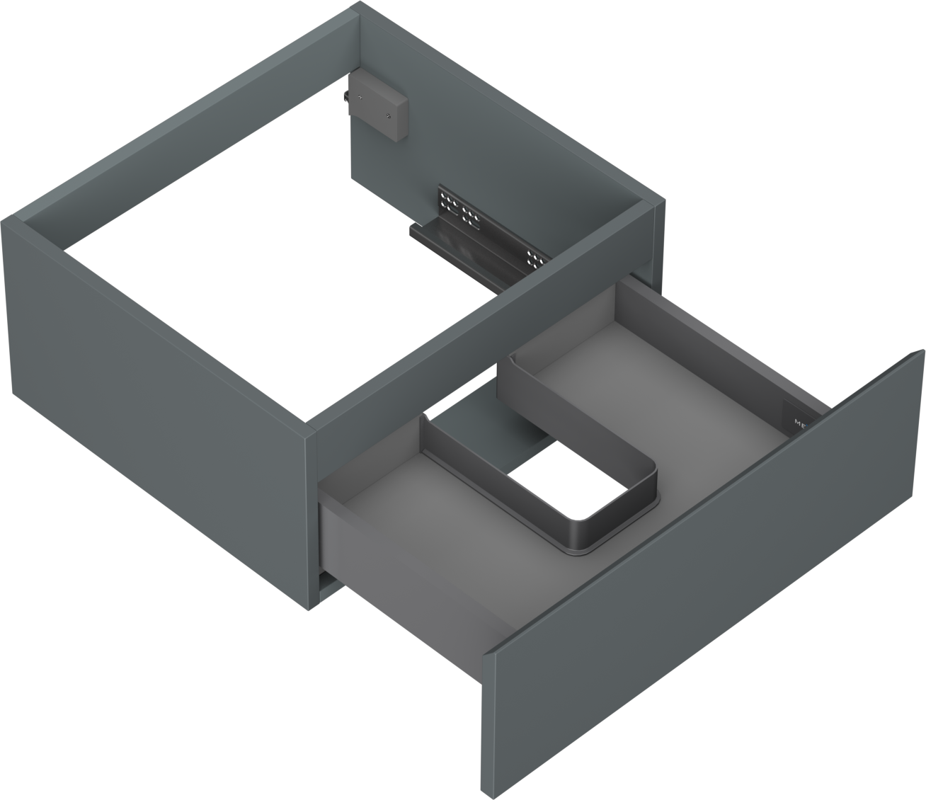 Der Ausschnitt in der Schublade ist für die Aufnahme eines Siphons ausgelegt, der für die Installation von Waschbecken unerlässlich ist. Dadurch kann das Möbelstück voll funktionsfähig installiert werden, ohne dass für die Installation Schubladenplatz geopfert werden muss.