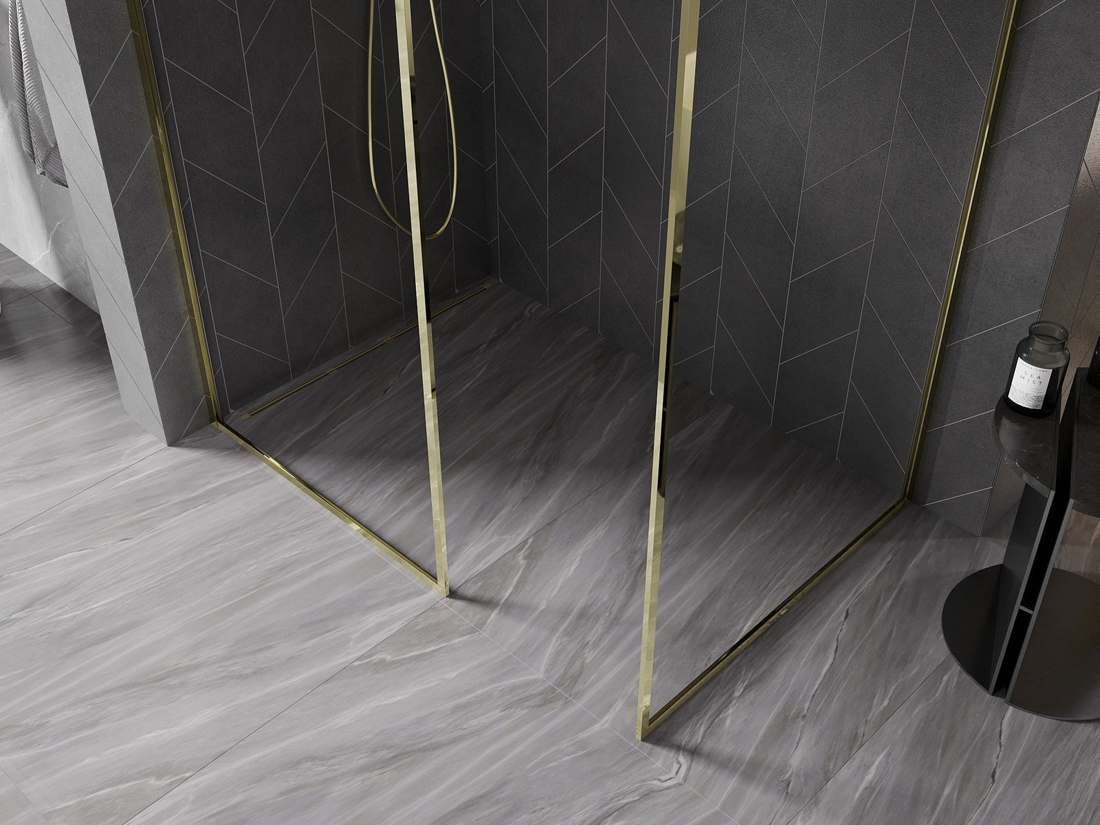Mexen Kioto-F Duschwand Walk-in mit Rahmen 100 x 80 cm, transparent 8 mm, gold - 800-100-202-04-50-080