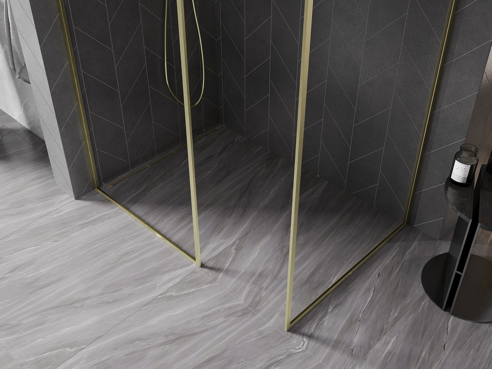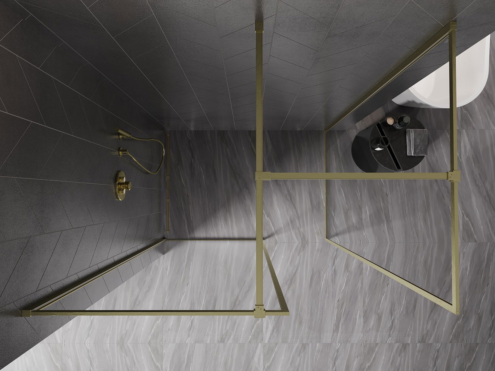 Mexen Kioto-F Duschwand Walk-in mit Rahmen 180 x 100 cm, transparent 8 mm, gebürstetes Gold - 800-180-202-04-55-100