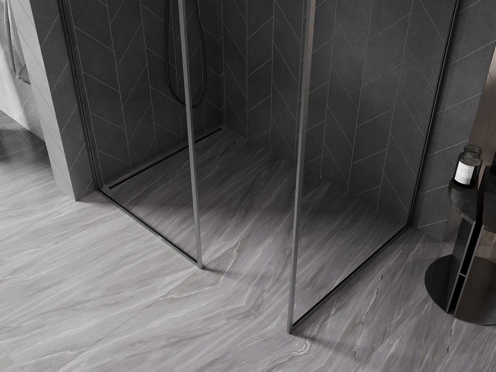 Mexen Kioto-F Duschwand Walk-in mit Rahmen 160 x 95 cm, transparent 8 mm, gebürstetes Gun Gray - 800-160-202-04-66-095