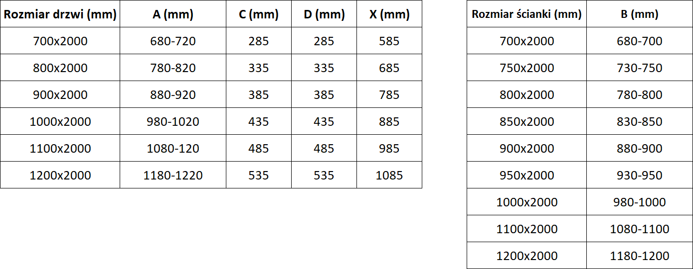 Größe: 70x80 cm (Tür 70 cm. Wand 80 cm)