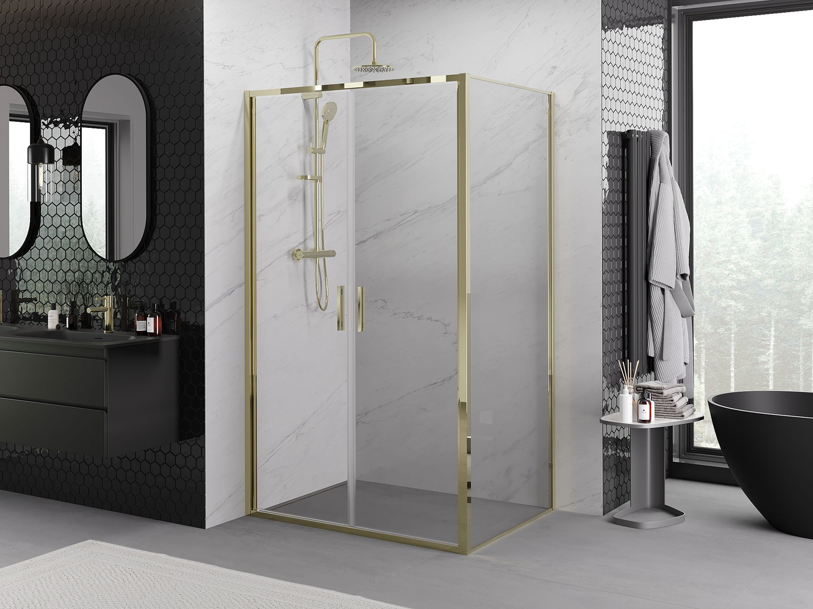 Mexen Exo Duschkabine zum Öffnen 90 x 100 cm, transparent, gold - 814-090-100-50-00