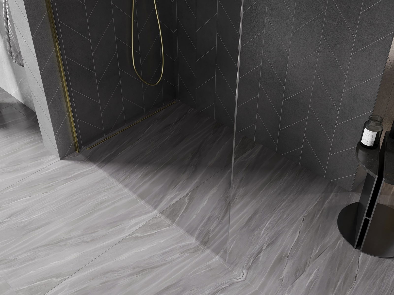 Die begehbare Duschwand ist eine ideale Lösung für Menschen mit Behinderungen. Die offene Kabine bietet einfachen Zugang und beseitigt die Notwendigkeit, Schwellenwerte und Türen zu überwinden. Die Dusche ist komfortabel und freundlich für alle.