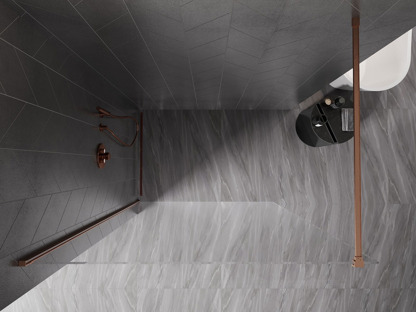 Die begehbare Duschwand ist eine ideale Lösung für Menschen mit Behinderungen. Die offene Kabine bietet einfachen Zugang und beseitigt die Notwendigkeit, Schwellenwerte und Türen zu überwinden. Die Dusche ist komfortabel und freundlich für alle.