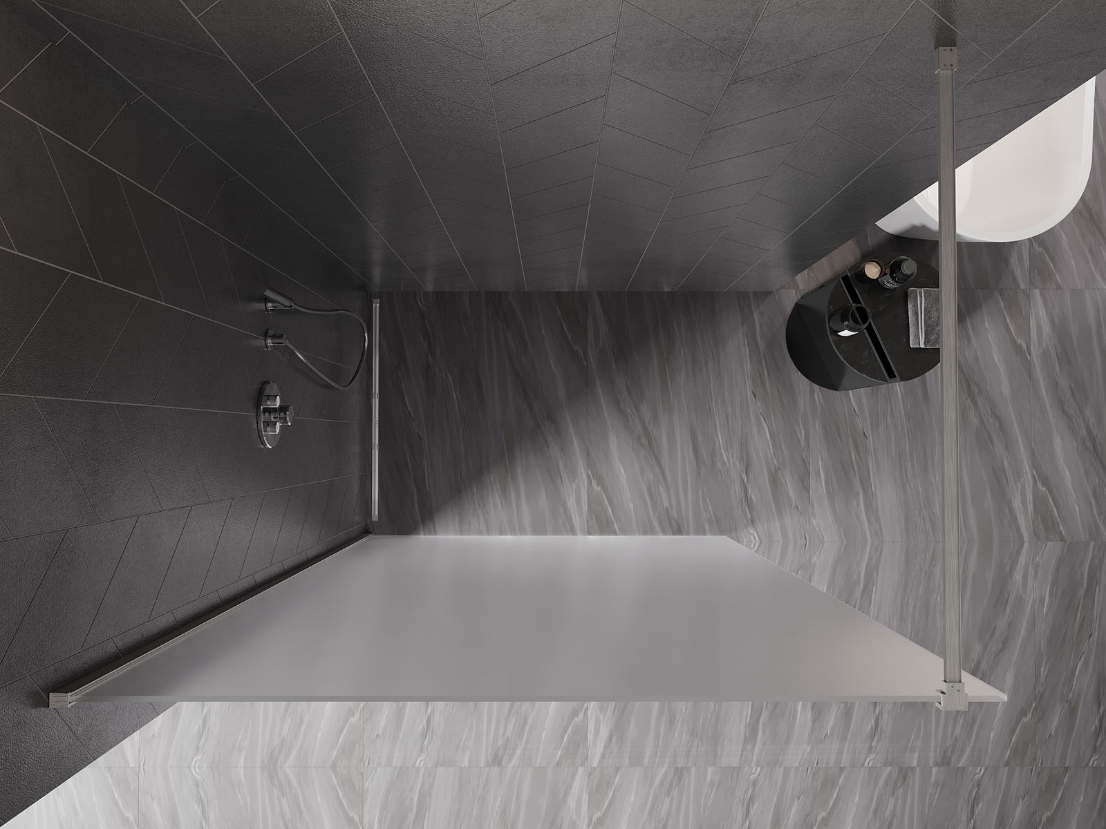 Die begehbare Duschwand ist eine ideale Lösung für Menschen mit Behinderungen. Die offene Kabine bietet einfachen Zugang und beseitigt die Notwendigkeit, Schwellenwerte und Türen zu überwinden. Die Dusche ist komfortabel und freundlich für alle.