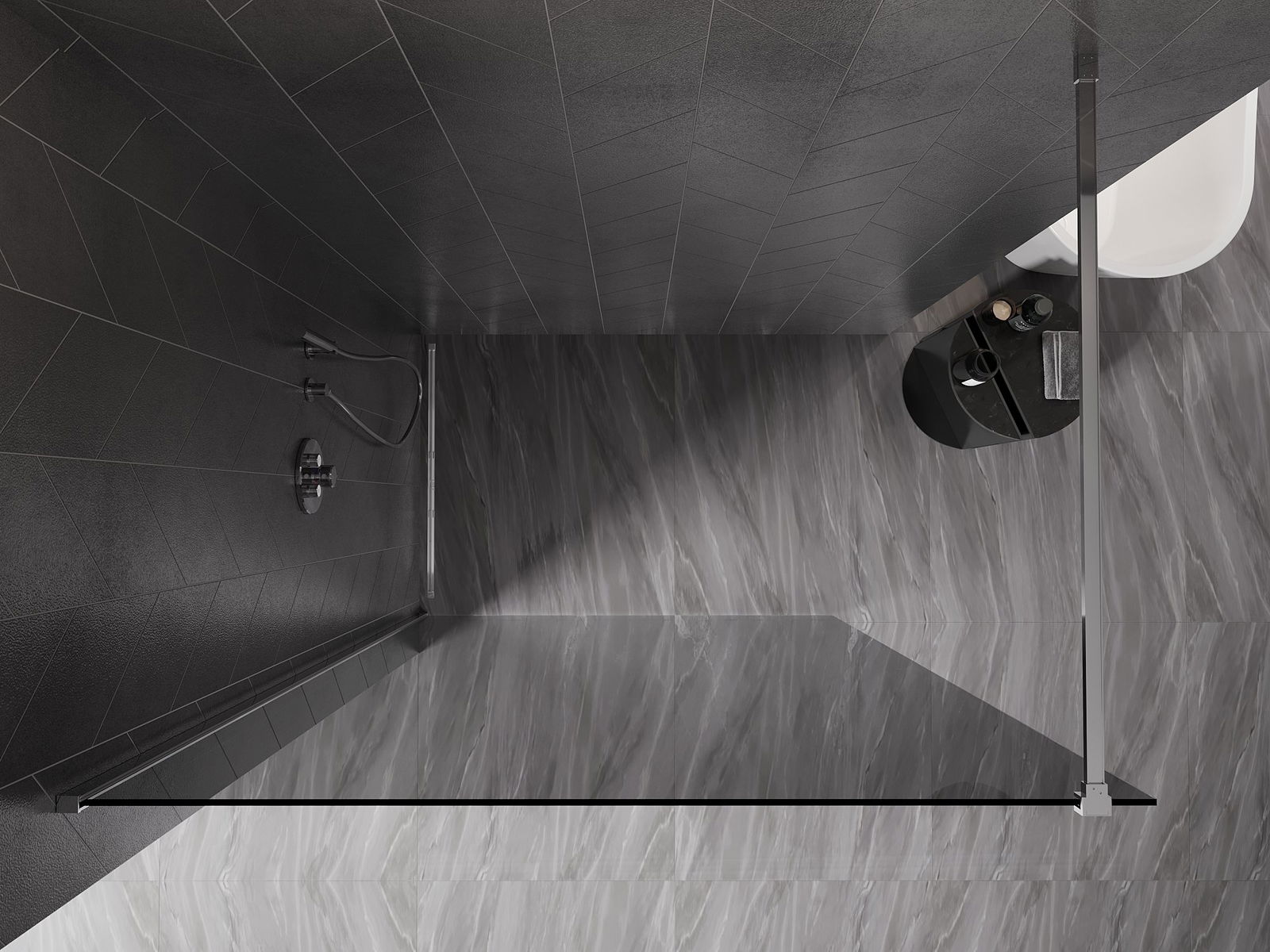 Die begehbare Duschwand ist eine ideale Lösung für Menschen mit Behinderungen. Die offene Kabine bietet einfachen Zugang und beseitigt die Notwendigkeit, Schwellenwerte und Türen zu überwinden. Die Dusche ist komfortabel und freundlich für alle.