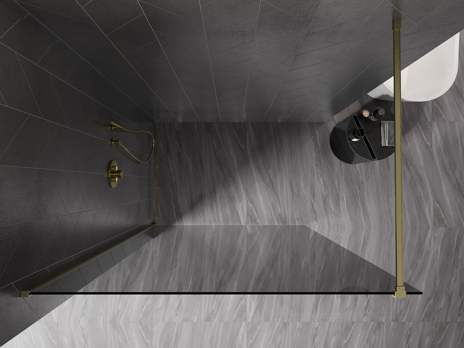 Mexen Kioto-X Duschwand Walk-in 140 x 200 cm, Graphit 10 mm, gebürstetes Gold - 800-140-101-55-40-X