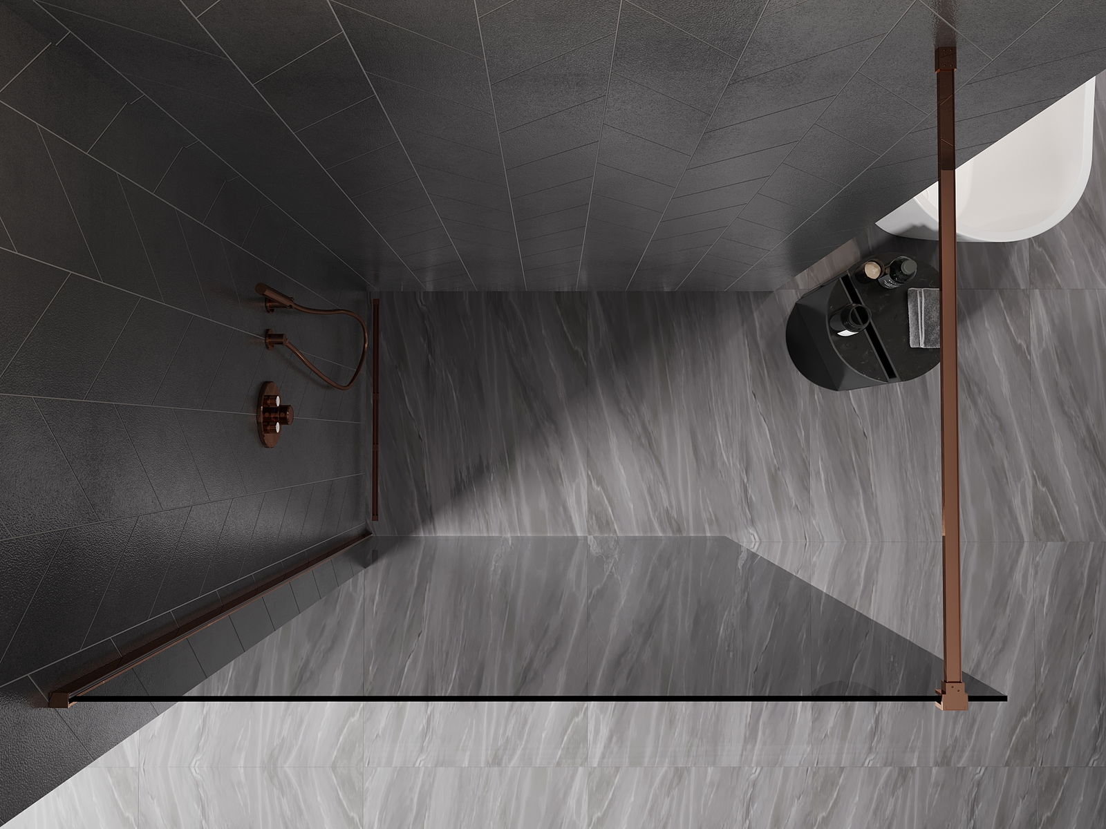 Mexen Kioto-X Duschwand Walk-in 100 x 200 cm, grafit 10 mm, roségold - 800-100-101-60-40-X