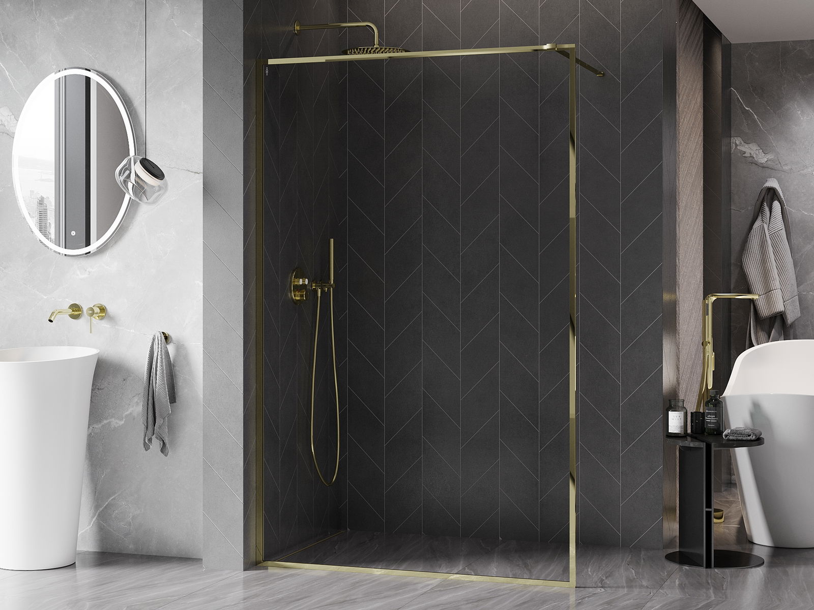 Die begehbare Duschwand ist eine ideale Lösung für Menschen mit Behinderungen. Die offene Kabine bietet einfachen Zugang und beseitigt die Notwendigkeit, Schwellenwerte und Türen zu überwinden. Die Dusche ist komfortabel und freundlich für alle.