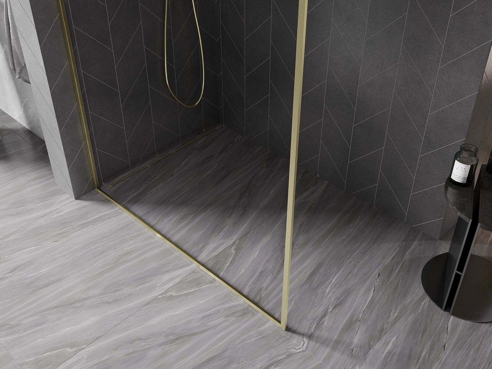 Mexen Kioto-XF Duschwand Walk-in mit Rahmen 50 x 202 cm, transparent 10 mm, gebürstetes Gold - 800-050-104-55-00-X