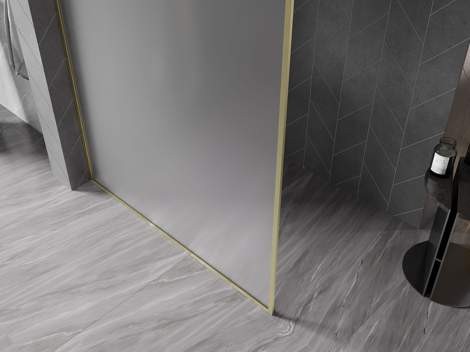 Mexen Kioto-XF Duschwand Walk-in mit Rahmen 130 x 202 cm, Frostglas 10 mm, gebürstetes Gold - 800-130-104-55-30-X