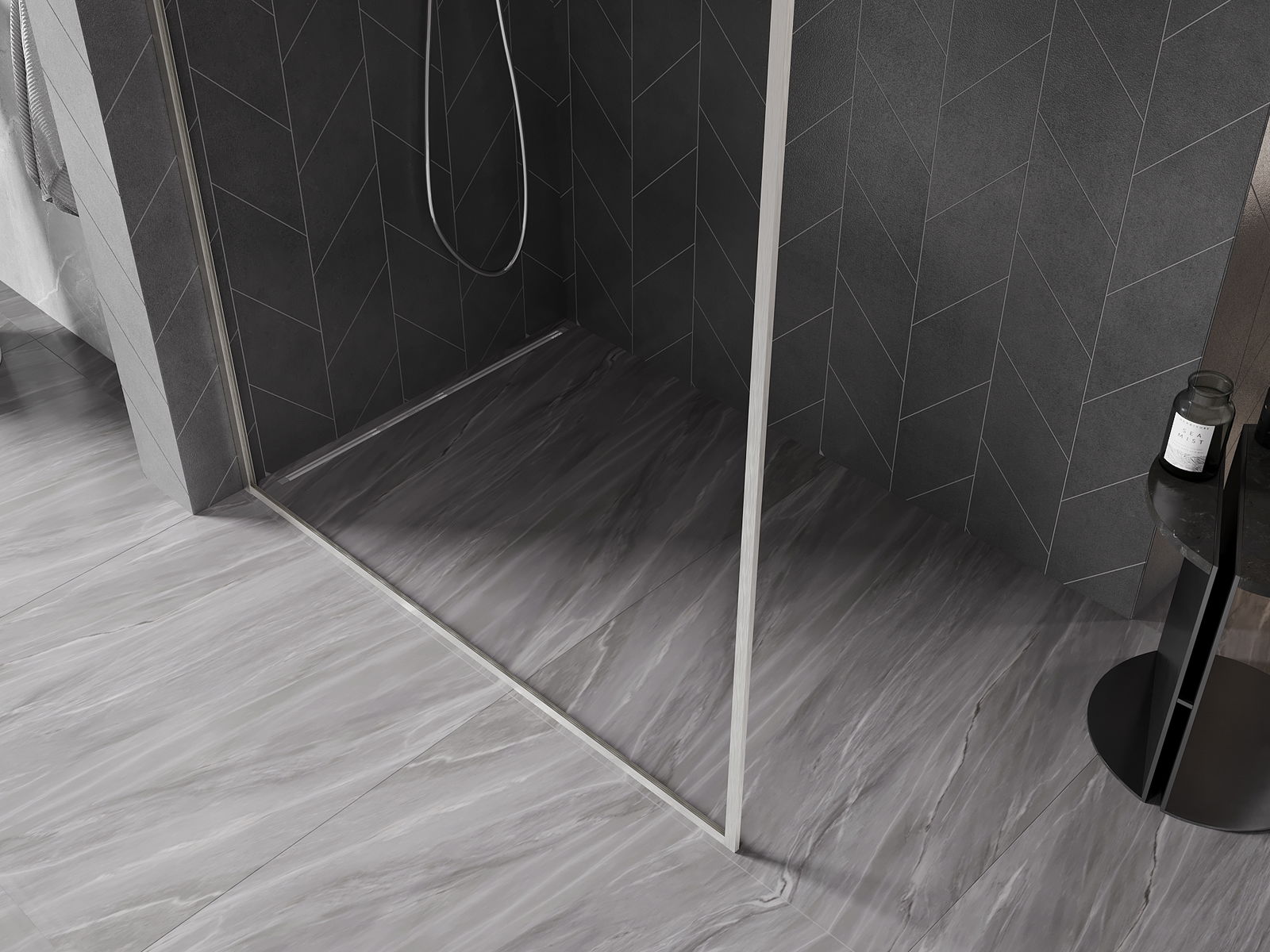 Mexen Kioto-F L Walk-in-Duschwand mit Rahmen 65 x 202 cm, transparent 8 mm, gebürsteter Nickel - 800-065-174-97-00