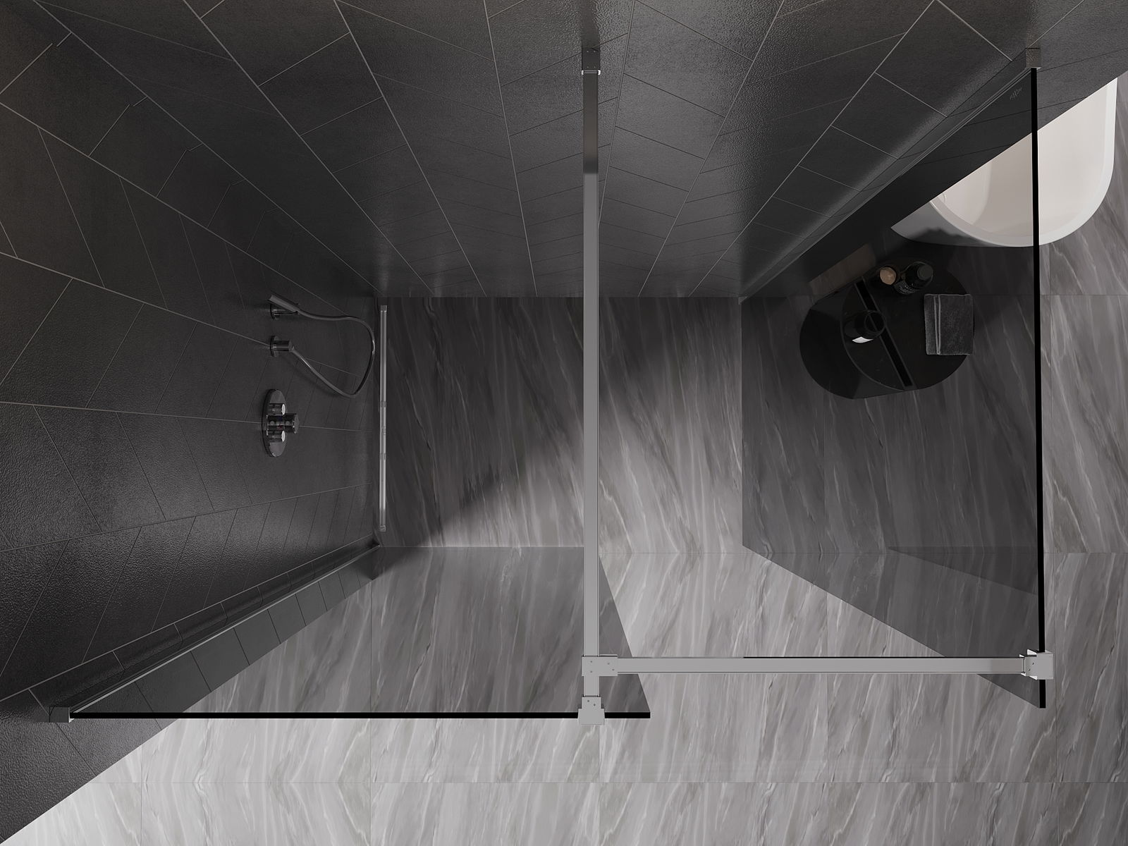 Das Produkt kann je nach Bedarf sowohl auf einer Duschwanne als auch direkt auf dem Boden montiert werden. Die universelle Montagemethode ermöglicht die Anpassung des Produkts an verschiedene Arten von Badezimmern und Raumkonfigurationen.