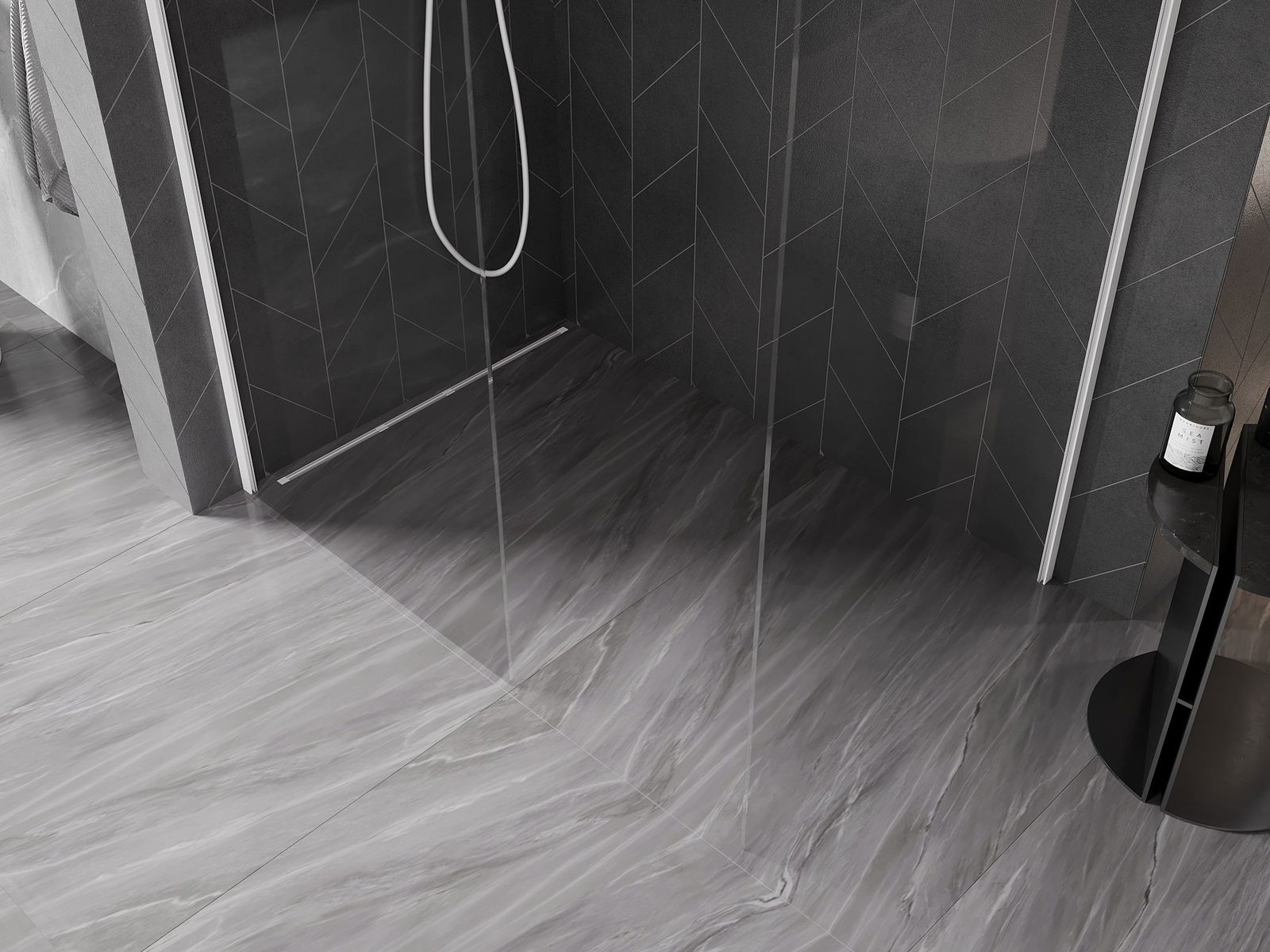 Die begehbare Duschwand ist eine ideale Lösung für Menschen mit Behinderungen. Die offene Kabine bietet einfachen Zugang und beseitigt die Notwendigkeit, Schwellenwerte und Türen zu überwinden. Die Dusche ist komfortabel und freundlich für alle.