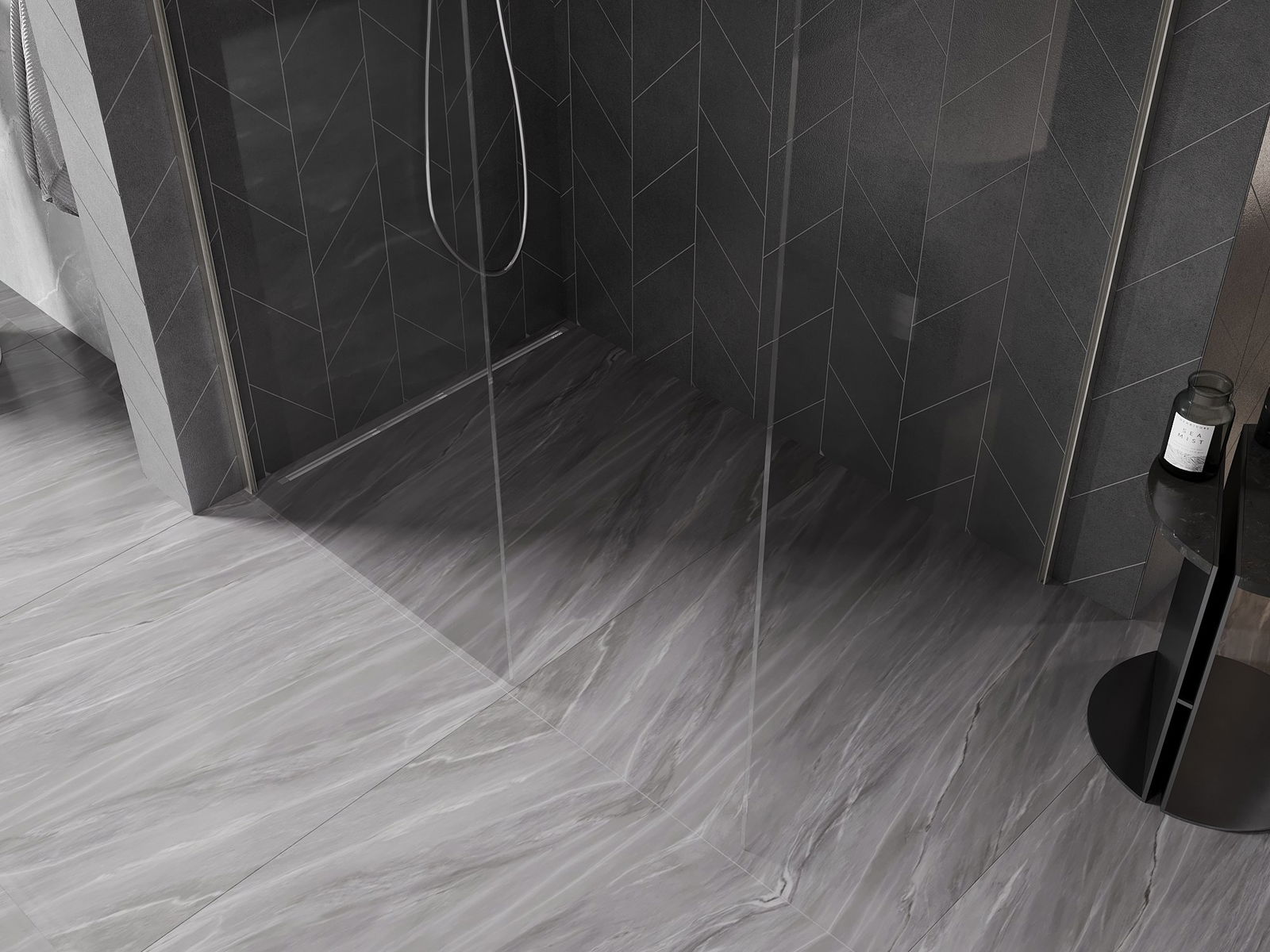 Das Produkt kann je nach Bedarf sowohl auf einer Duschwanne als auch direkt auf dem Boden montiert werden. Die universelle Montagemethode ermöglicht die Anpassung des Produkts an verschiedene Arten von Badezimmern und Raumkonfigurationen.