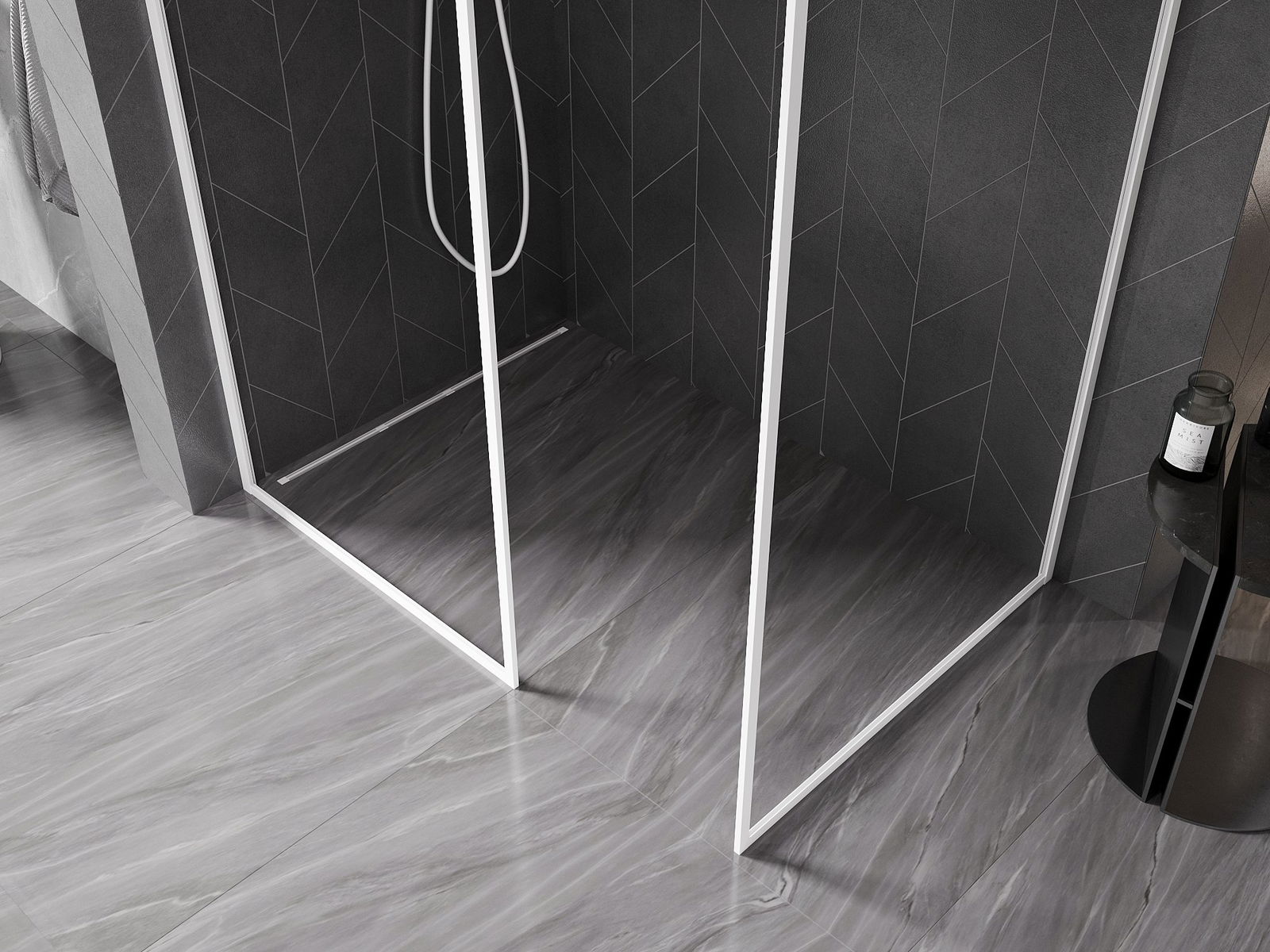 Die begehbare Duschwand ist eine ideale Lösung für Menschen mit Behinderungen. Die offene Kabine bietet einfachen Zugang und beseitigt die Notwendigkeit, Schwellenwerte und Türen zu überwinden. Die Dusche ist komfortabel und freundlich für alle.