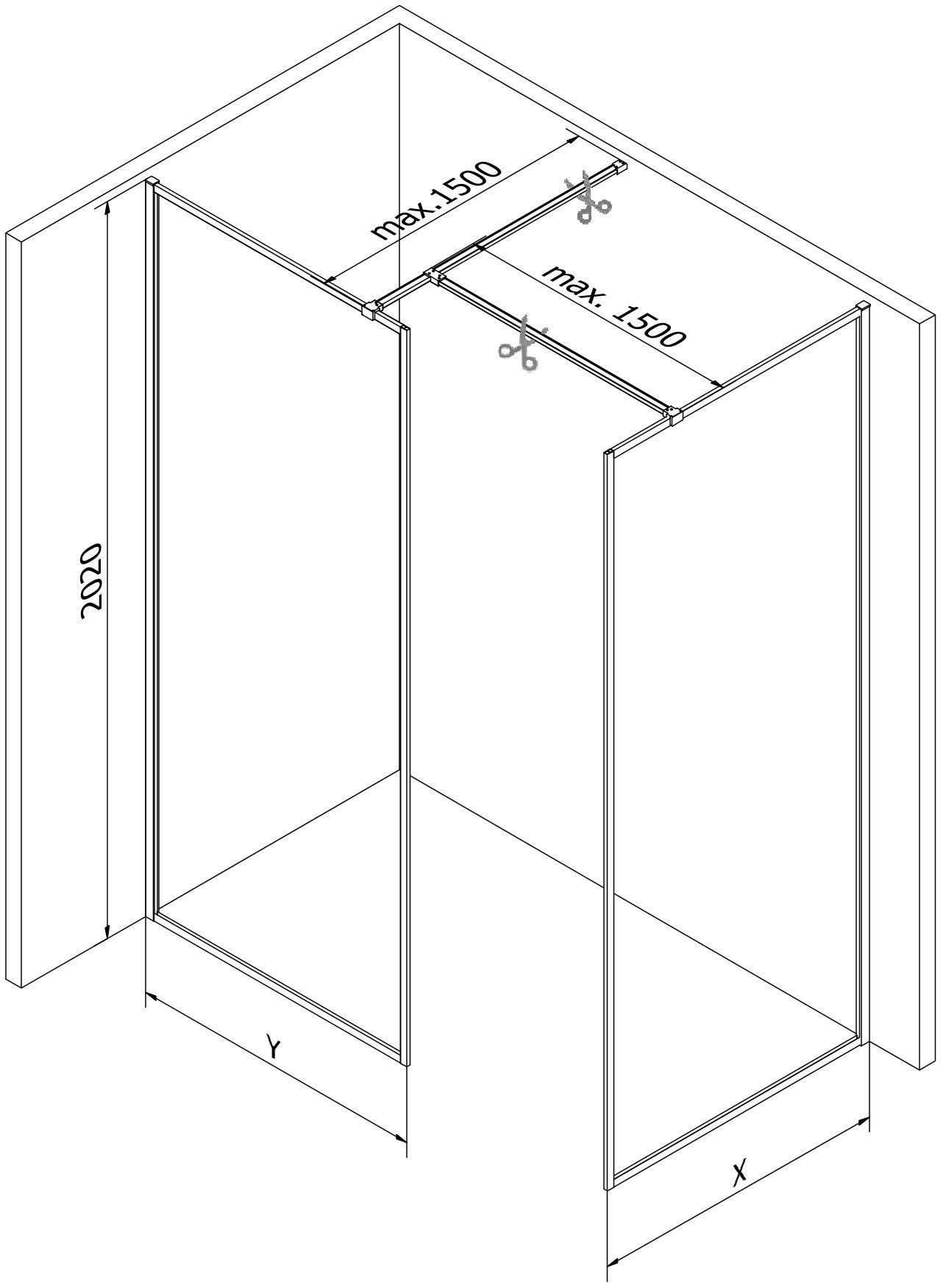Breite: 90x80 cm (Wand X - 90 cm, Wand Y - 80 cm)