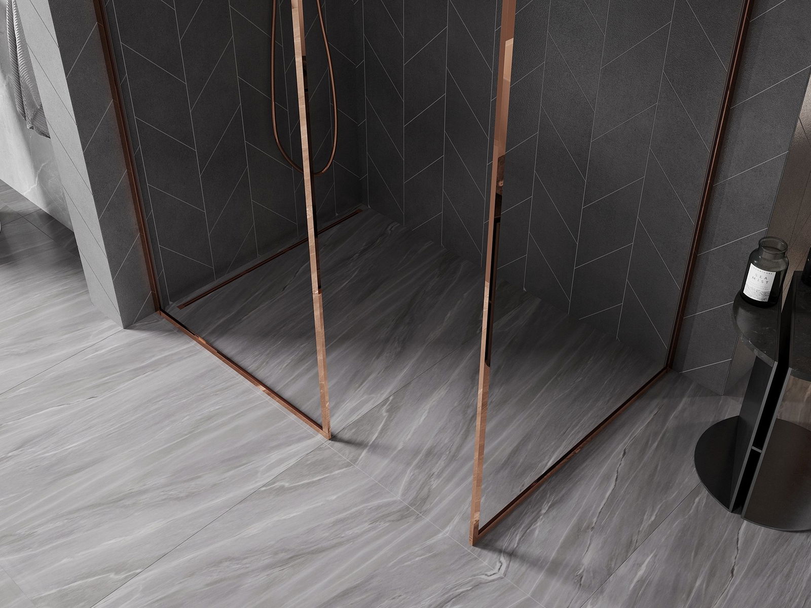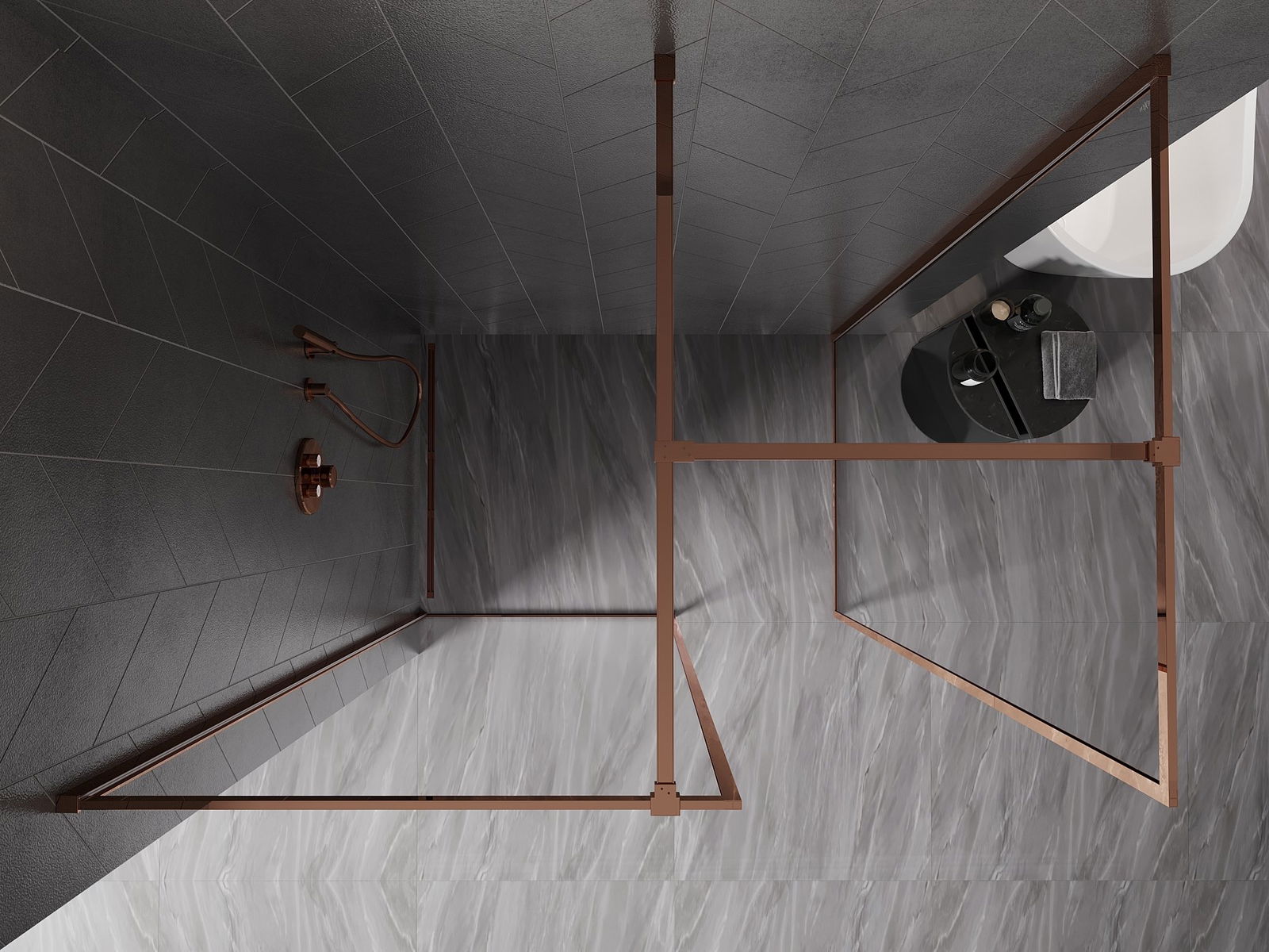 Mexen Kioto-XF Duschwand Walk-in mit Rahmen 90 x 80 cm, transparent 10 mm, Roségold - 800-090-202-04-60-080-XF