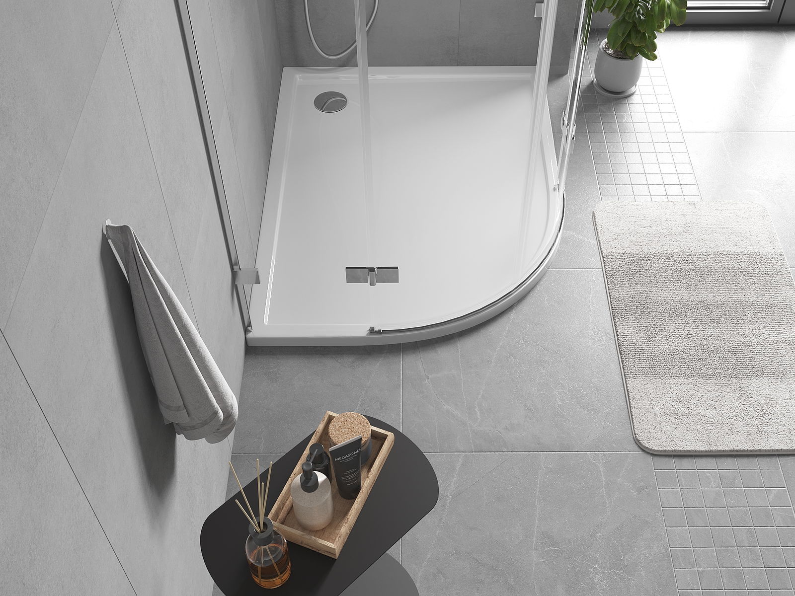 Die Duschwanne wurde so gestaltet, dass Wasser ungehindert in Richtung Abfluss fließen kann. Sie sorgt für eine schnelle und effiziente Ableitung des Wassers von der Duschwannenoberfläche und verhindert die Bildung von Pfützen und das Überfluten des Badezimmers.