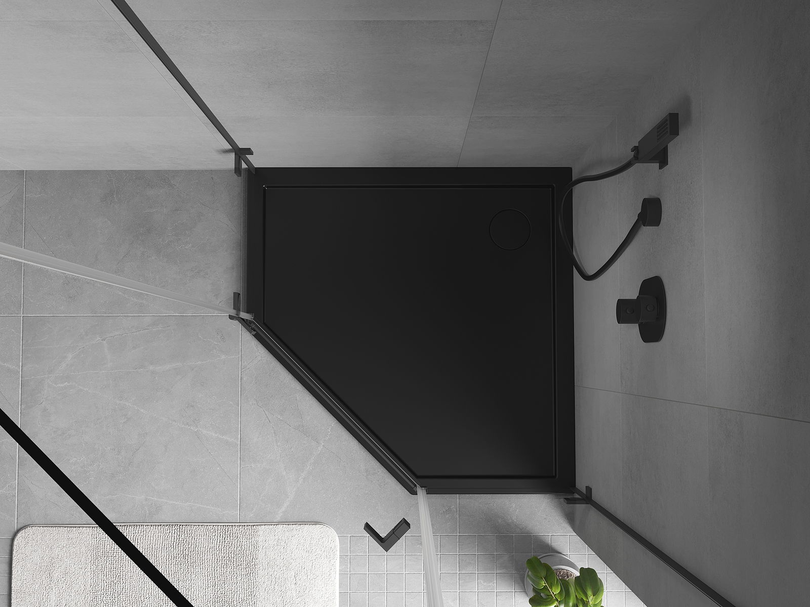 Mexen Flow Fünfeck-Duschwanne Slim 90 x 90 cm, schwarz matt - 46P709090
