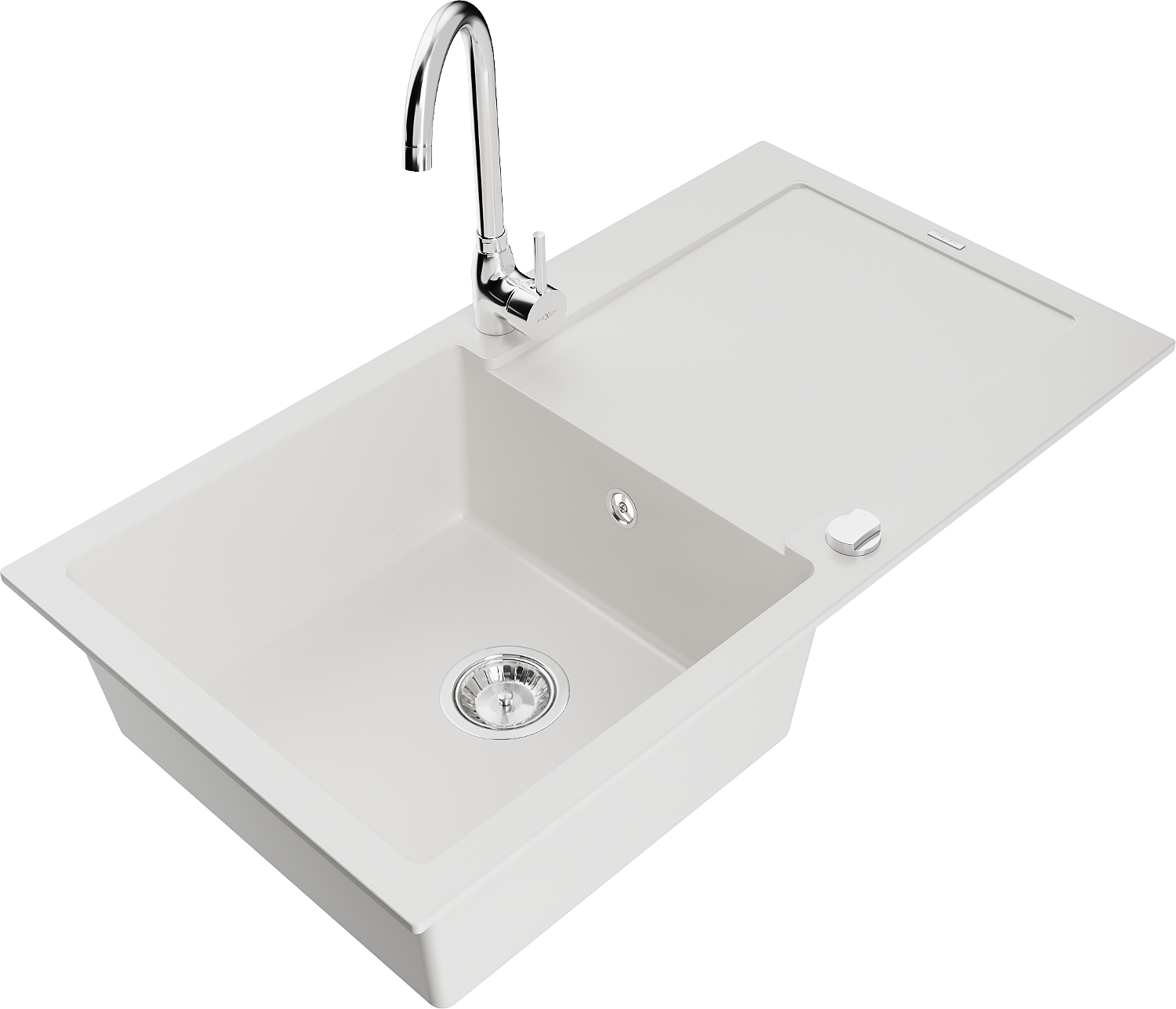 Mexen Leo Einbauspüle aus Granit, 1-beckig mit Abtropffläche und Küchenarmatur Telma, weiß - 6501-20-670200-00