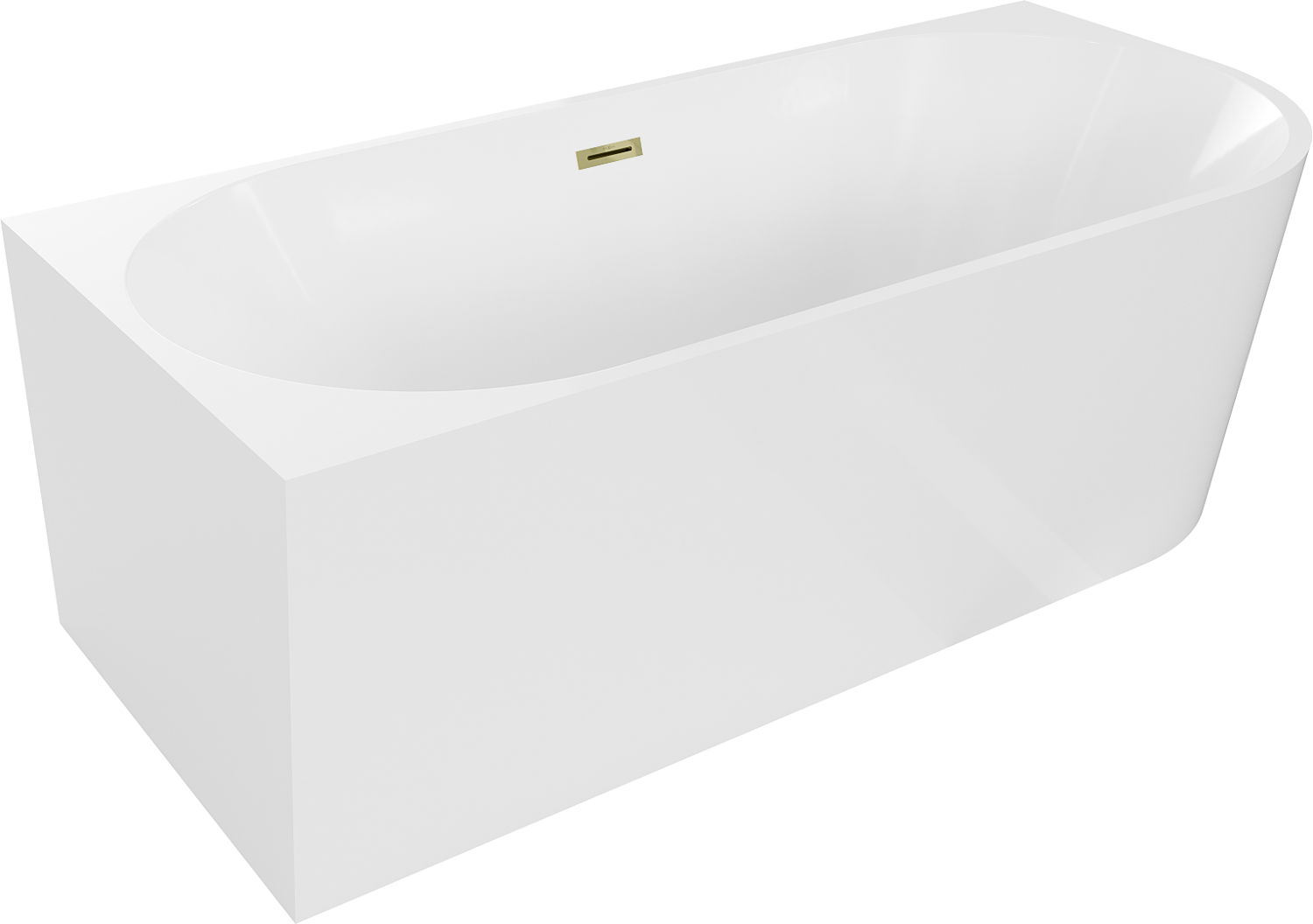 Mexen Mia freistehende Eckbadewanne links 140 x 75 cm, weiß, Überlauf gold - 52691407500L-50
