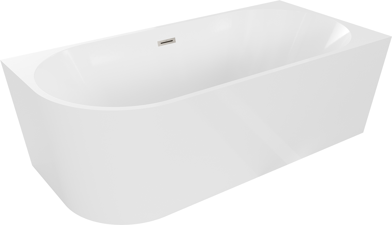 Mexen Mia freistehende Eckbadewanne rechts 160 x 80 cm, weiß, Überlauf gebürstetes Nickel - 52691608000P-97