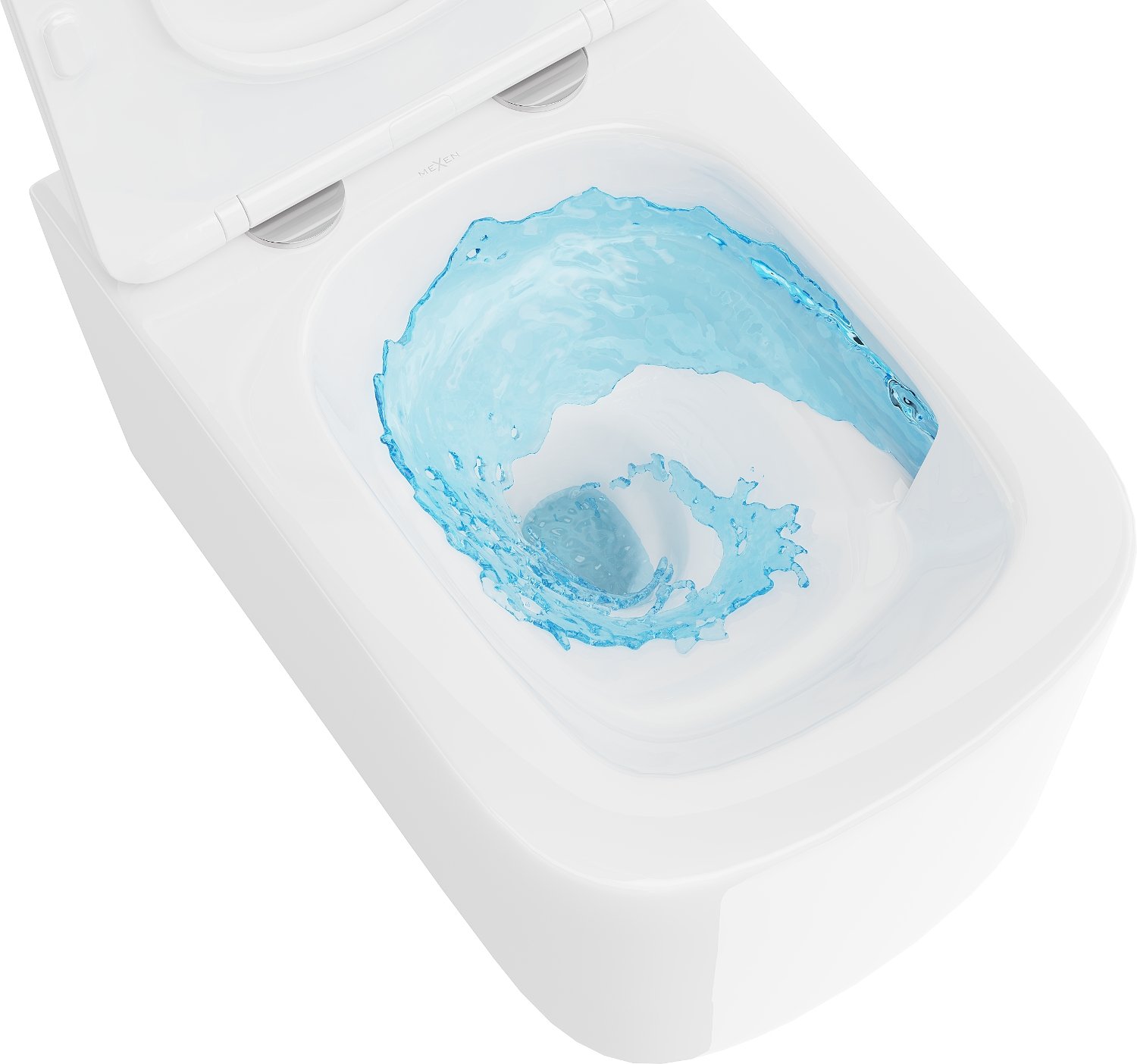 Ein System, das sich durch das Fehlen eines traditionellen Randes (randlos) und ein spezifisches, spiralförmiges Spülsystem auszeichnet, das einem Wirbel ähnelt. Das Spülwasser erzeugt einen "Tornado"-Effekt, der die gesamte Schüsseloberfläche schnell und effektiv spült, was zu einer besseren Reinigung beiträgt und die Ablagerung von Schmutz verhindert.