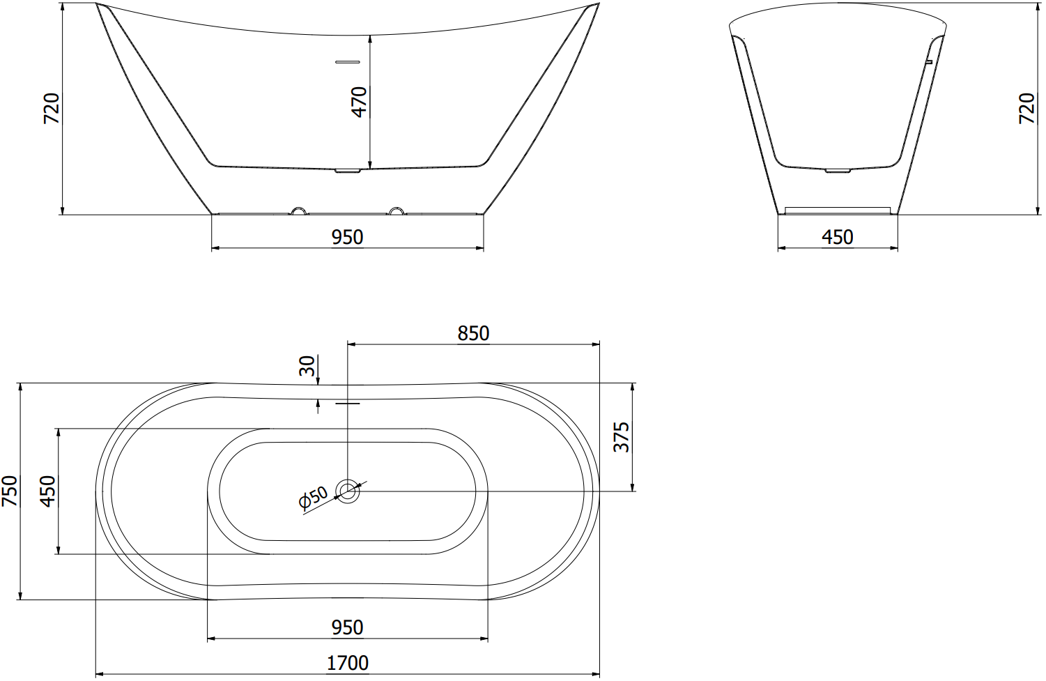 Die Badewanne ist mit verstellbaren Füßen ausgestattet, die es ermöglichen, die Wanne auch auf unebenen Flächen auszurichten. Eine praktische Lösung, die für mehr Stabilität und Sicherheit während der Benutzung sorgt und eine einfache Montage bietet.