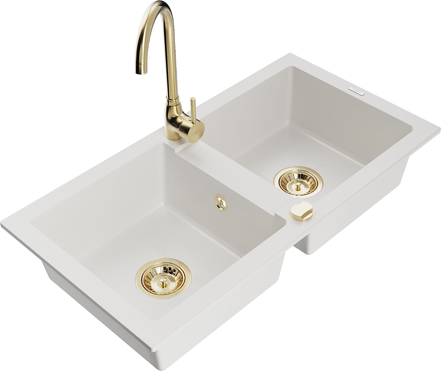 Mexen Mario Granitspüle 2-kammerig mit Telma Küchenarmatur, weiß - 6504-20-670200-50