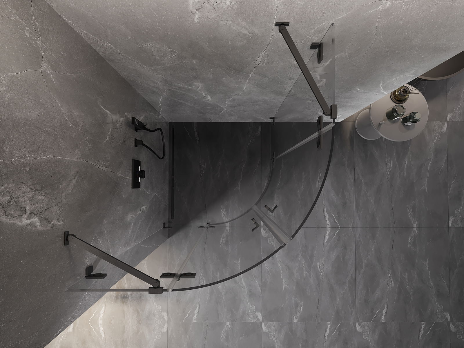 Mexen Lunar halbkreisförmige, schwenkbare Duschkabine 90 x 90 cm, transparent, gebürstetes Kanonengrau - 833-090L-090P-66-00