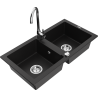 Mexen Mario Granitspüle 2 Kammern mit Küchenarmatur Telma, schwarz gesprenkelt - 6504-76-670200-00