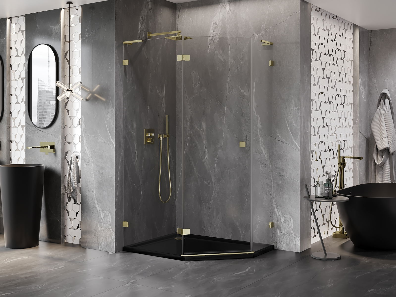 Der handliche und bequeme Griff besteht aus langlebigem und widerstandsfähigem Metall. Die modische Form in Kombination mit einer farblich auf die Profile abgestimmten Oberflächenveredelung verleiht dem Ganzen ein modernes und stilvolles Erscheinungsbild und betont die Ästhetik jedes Badezimmers.