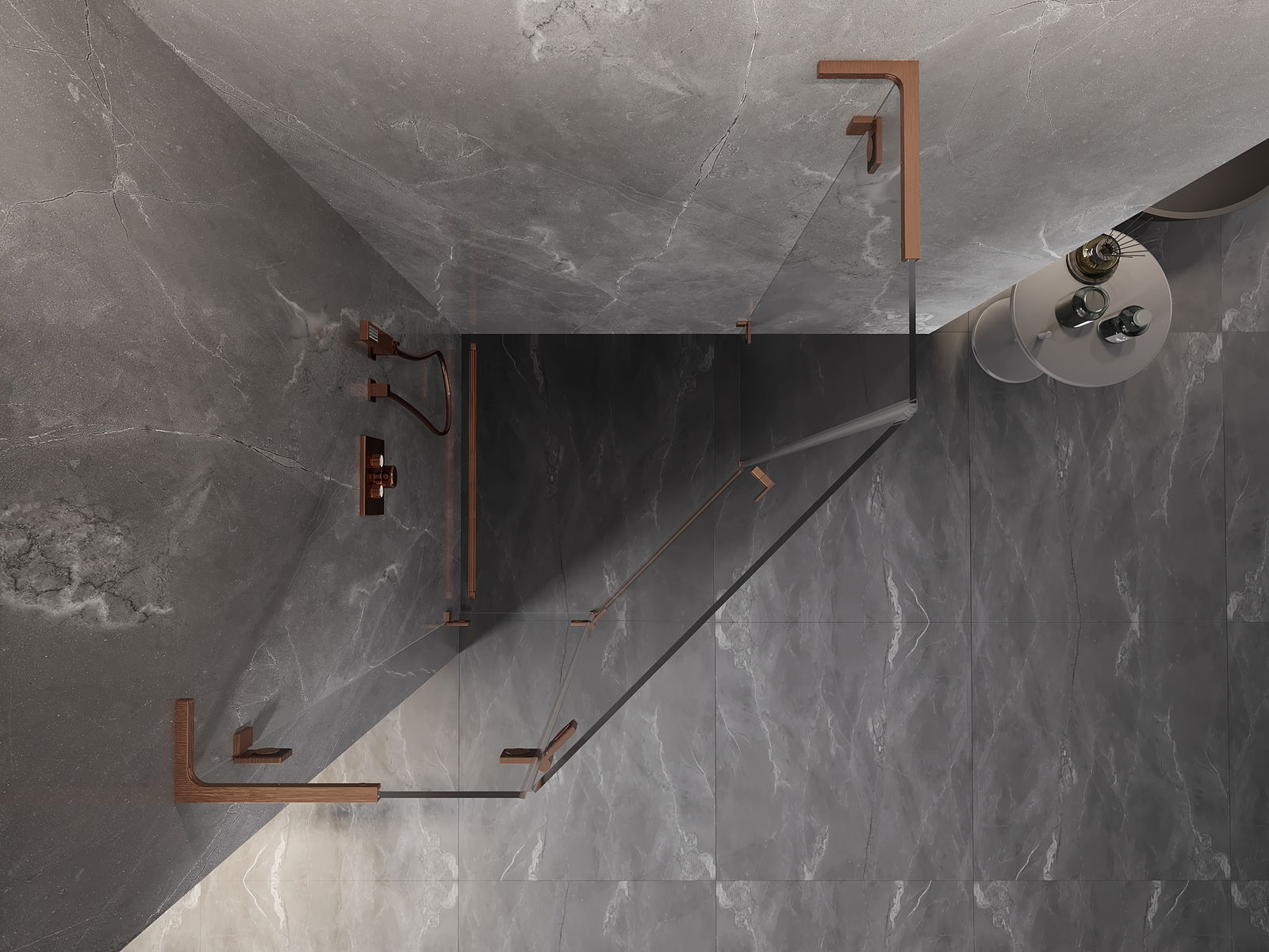 Mexen Lunar L Fünfeck-Duschkabine schwenkbar links 100 x 100 cm, transparent, gebürstetes Kupfer - 831L-100L-100P-65-00-L