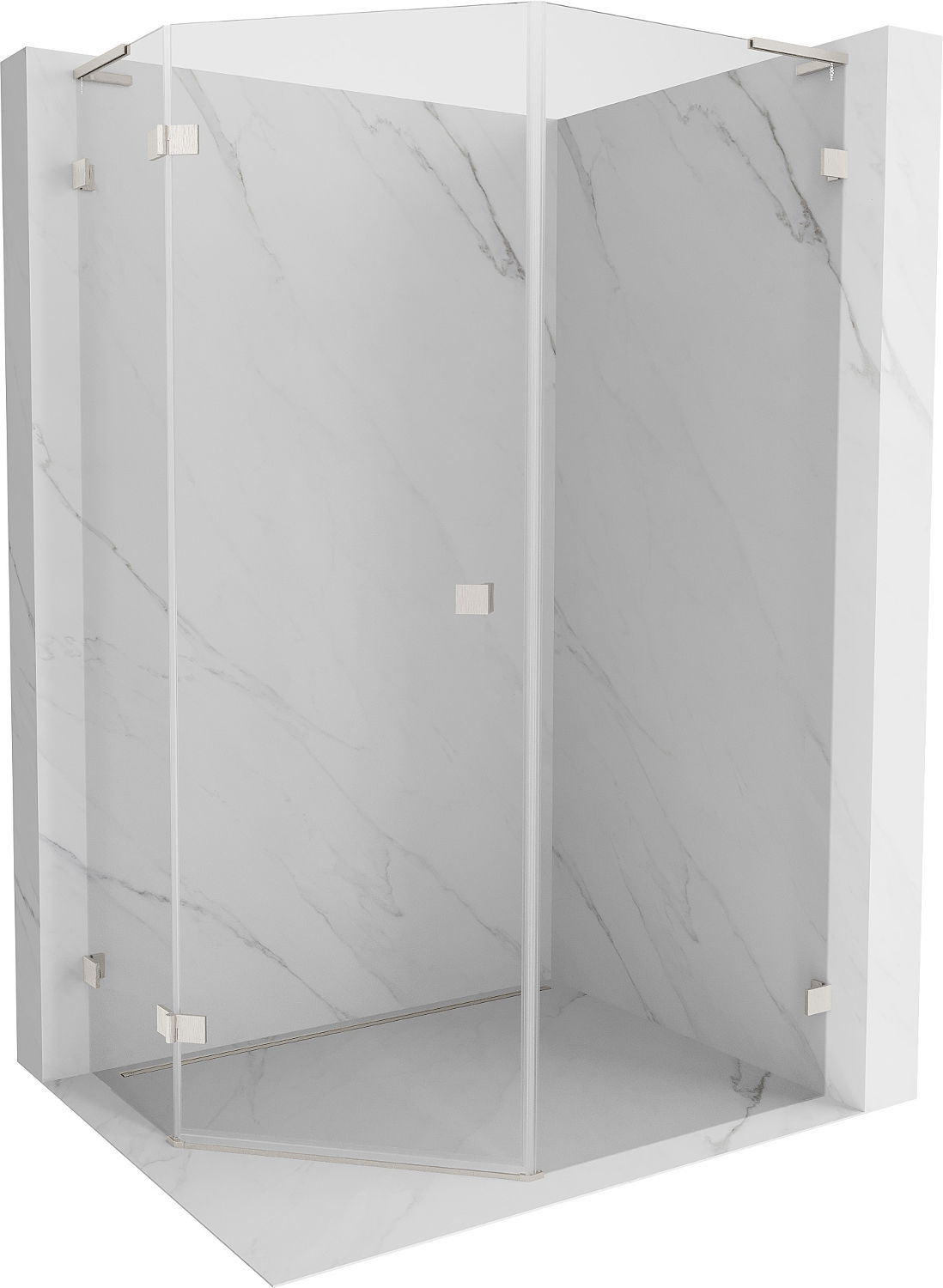 Mexen Lunar L fünfeckige Duschkabine, links öffnend, 80 x 90 cm, transparent, gebürsteter Nickel - 831L-080L-090P-97-00-L