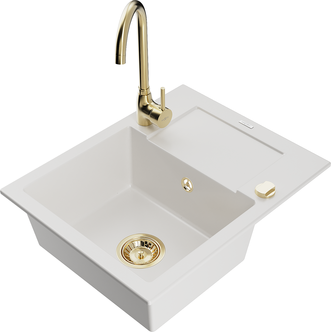 Mexen Enzo 1-Becken Granitspüle mit Abtropffläche und Küchenarmatur Telma, weiß - 6506-20-670200-50