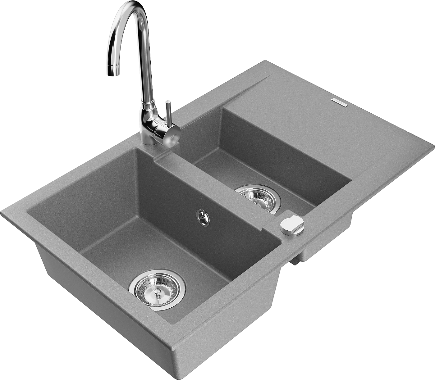 Mexen Gaspar 1,5-Kammer Granitspüle mit Abtropffläche und Küchenarmatur Telma, grau - 6507-71-670200-00