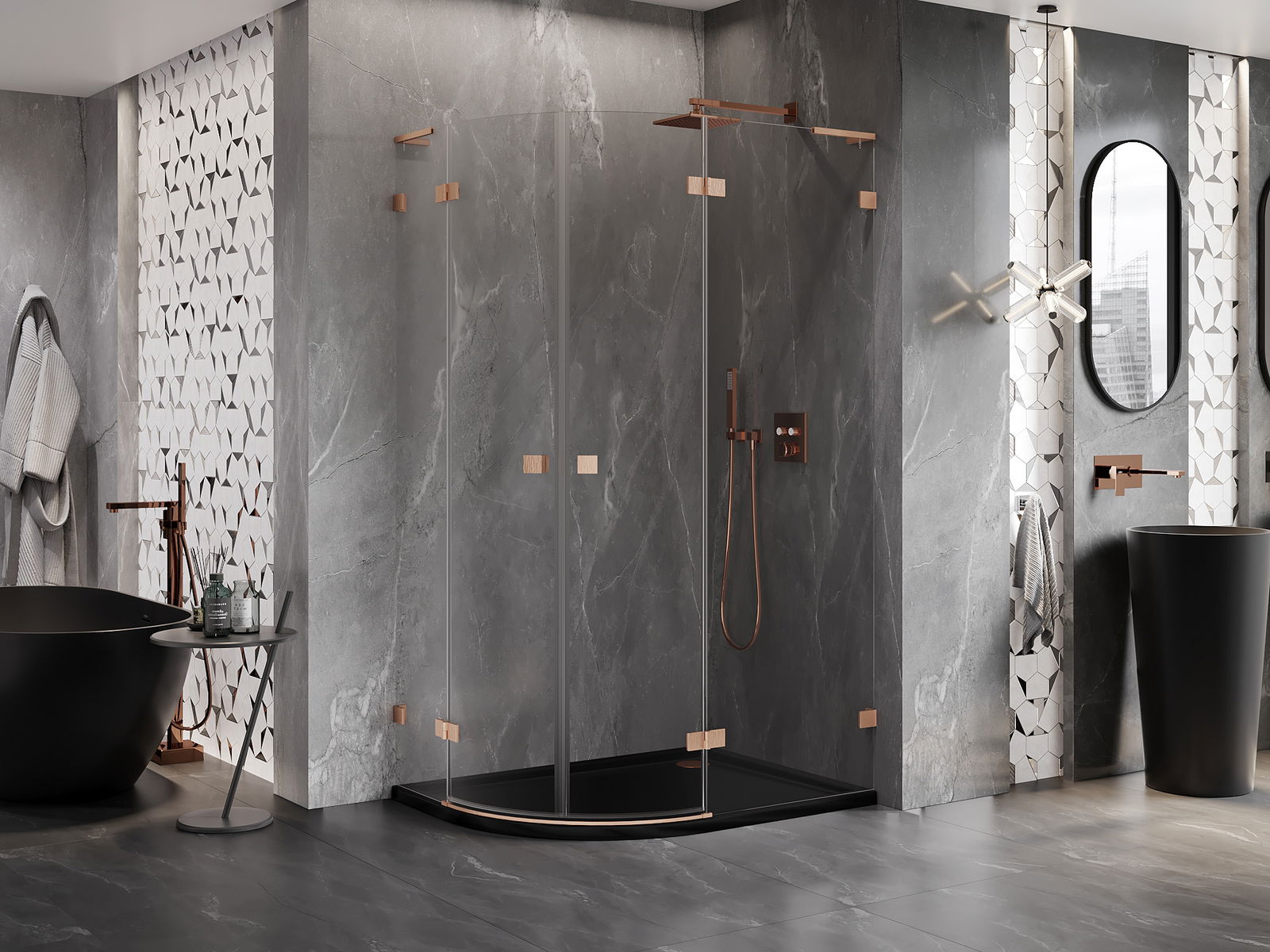 Klammern und Scharniere bestehen aus sehr haltbarem Messing und bilden zudem eine bündige Glasfläche. Dies ist eine ausgezeichnete Wahl, die Eleganz, Haltbarkeit und modernes Design verbindet. Dank solcher Lösungen gewinnt die Dusche an Ästhetik und erleichtert gleichzeitig die Reinigung.