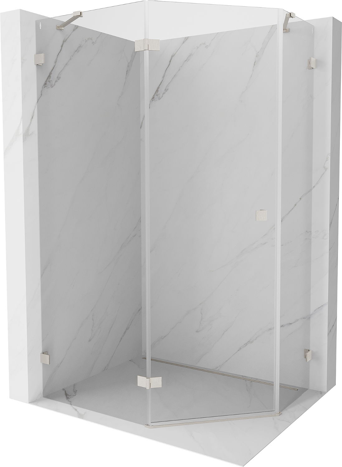 Mexen Lunar Fünfeck-Duschkabine, schwenkbar, links, 100 x 80 cm, transparent, gebürstetes Nickel - 831-100L-080P-97-00-L