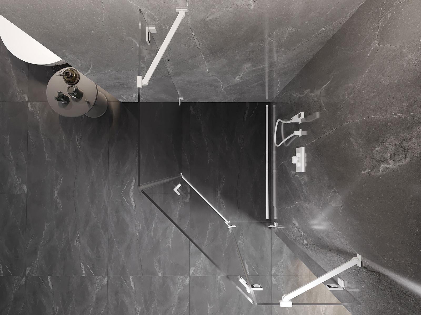 Das Produkt kann je nach Bedarf sowohl auf einer Duschwanne als auch direkt auf dem Boden montiert werden. Die universelle Montagemethode ermöglicht die Anpassung des Produkts an verschiedene Arten von Badezimmern und Raumkonfigurationen.