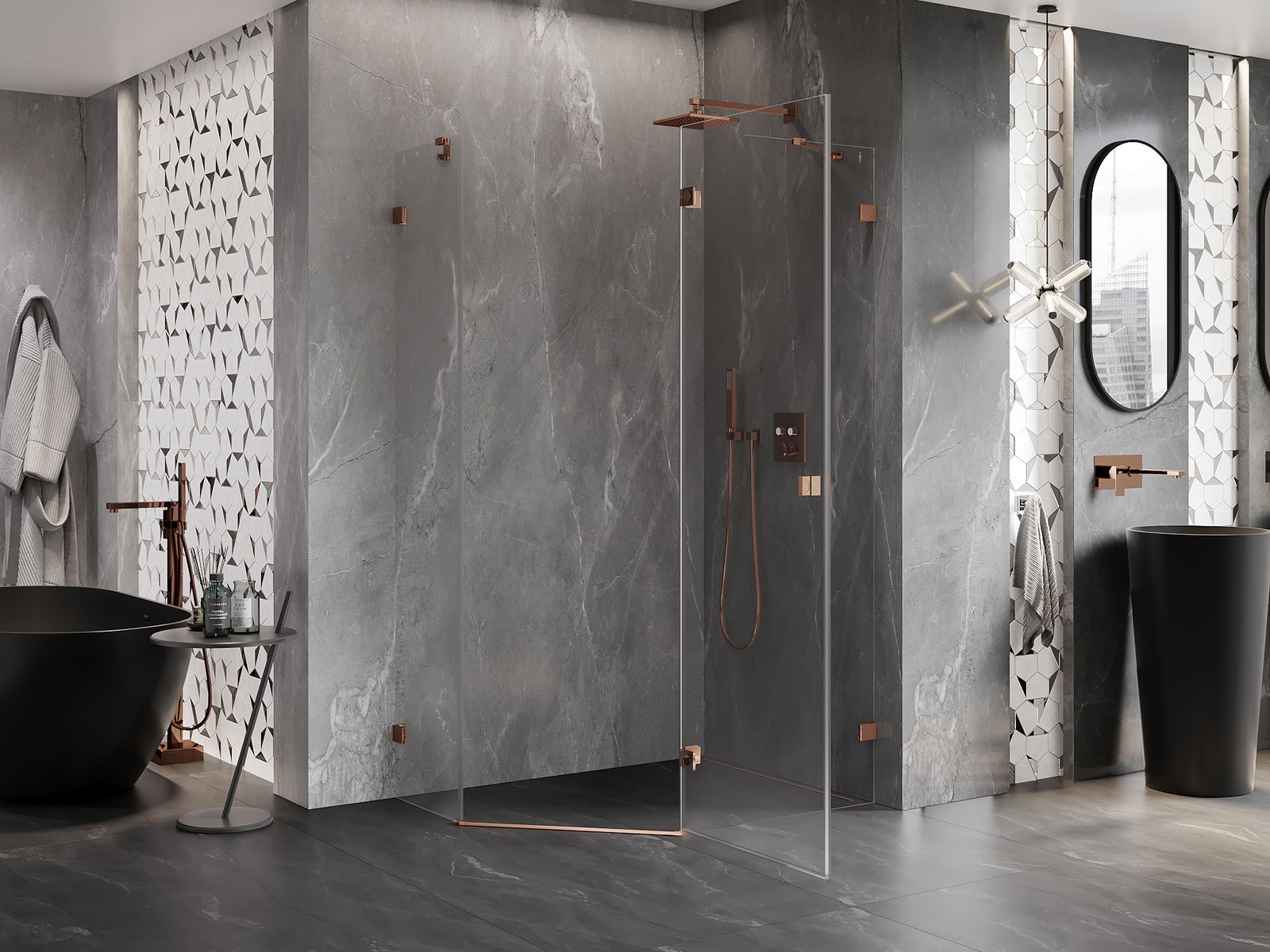 Mexen Lunar fünfeckige Duschkabine mit rechter Drehtür 100 x 90 cm, transparent, Roségold - 831-100P-090L-60-00-P