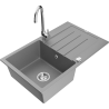Die Spüle besteht aus hochwertigem Granit. Es ist eine elegante und vor allem praktische Ergänzung zu jeder Küche, unabhängig von ihrem Stil. Hohe Qualität und Granitdauer sorgen für eine langjährige Nutzung.