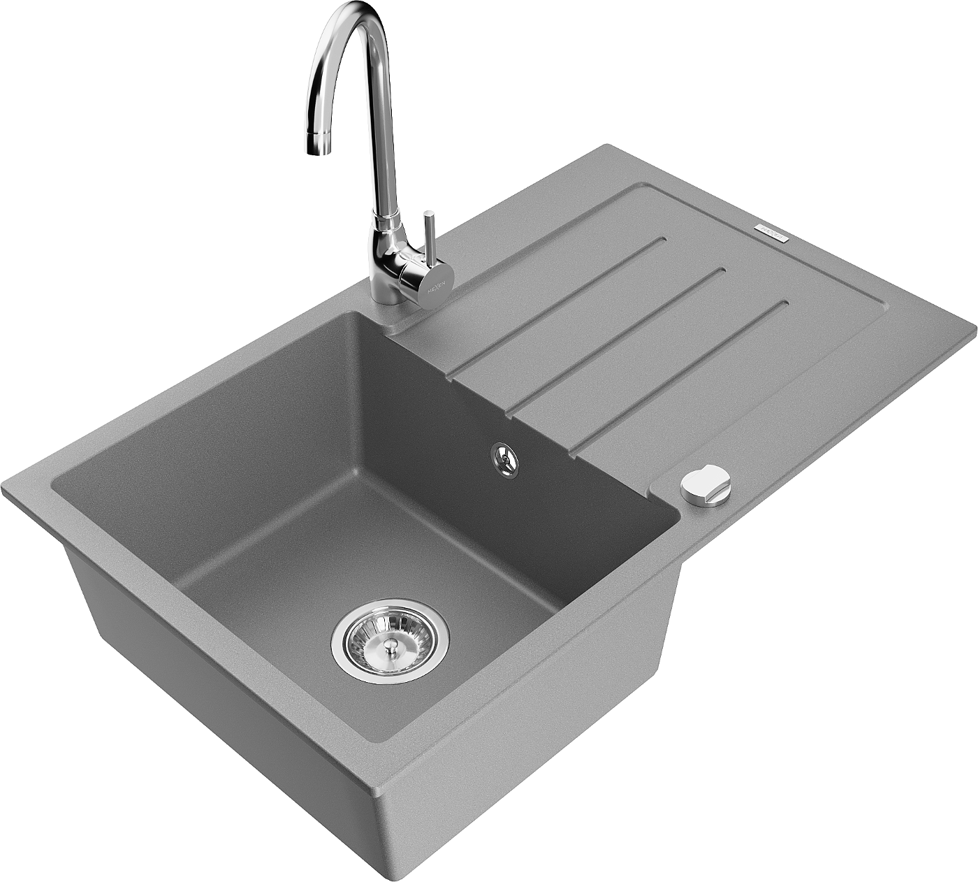 Mexen Bruno Granitspüle 1-beckig mit Abtropffläche und Küchenarmatur Telma, grau - 6513-71-670200-00