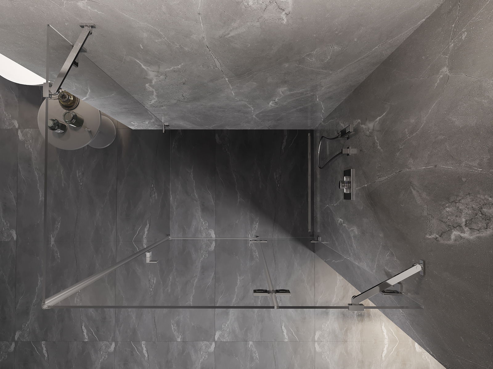 Das Produkt kann je nach Bedarf sowohl auf einer Duschwanne als auch direkt auf dem Boden montiert werden. Die universelle Montagemethode ermöglicht die Anpassung des Produkts an verschiedene Arten von Badezimmern und Raumkonfigurationen.