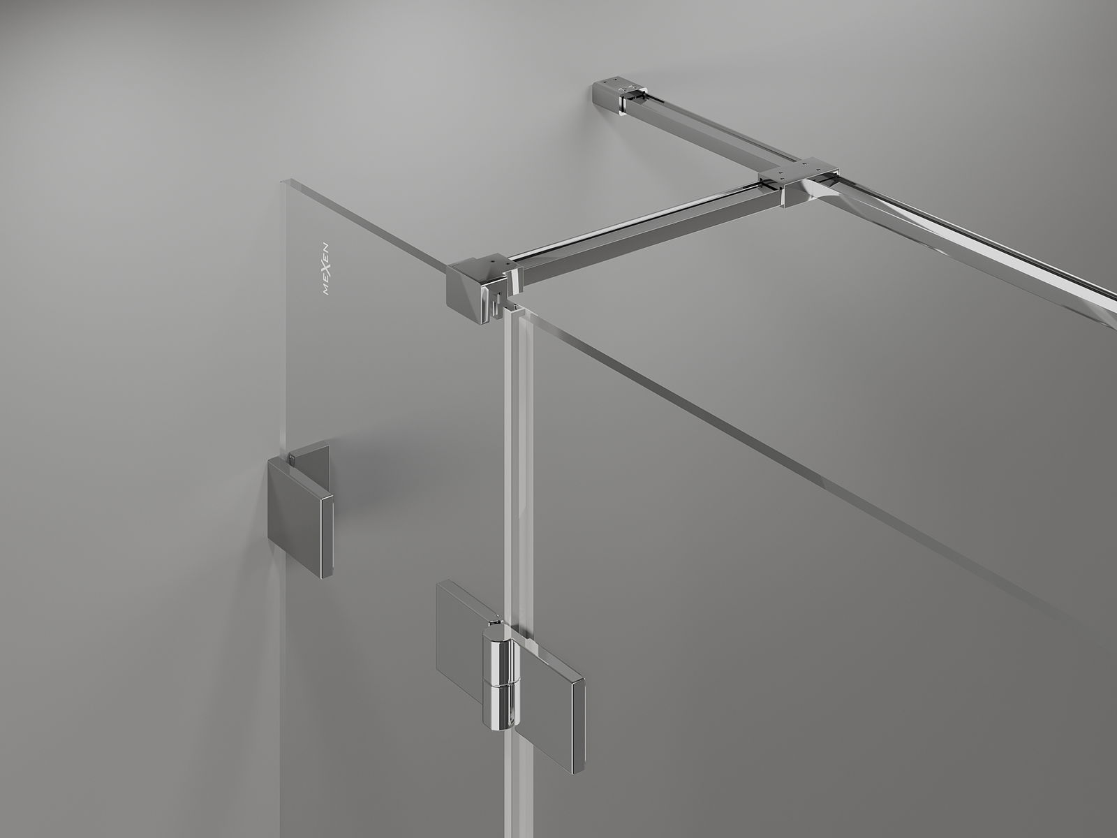 Klammern und Scharniere bestehen aus sehr haltbarem Messing und bilden zudem eine bündige Glasfläche. Dies ist eine ausgezeichnete Wahl, die Eleganz, Haltbarkeit und modernes Design verbindet. Dank solcher Lösungen gewinnt die Dusche an Ästhetik und erleichtert gleichzeitig die Reinigung.