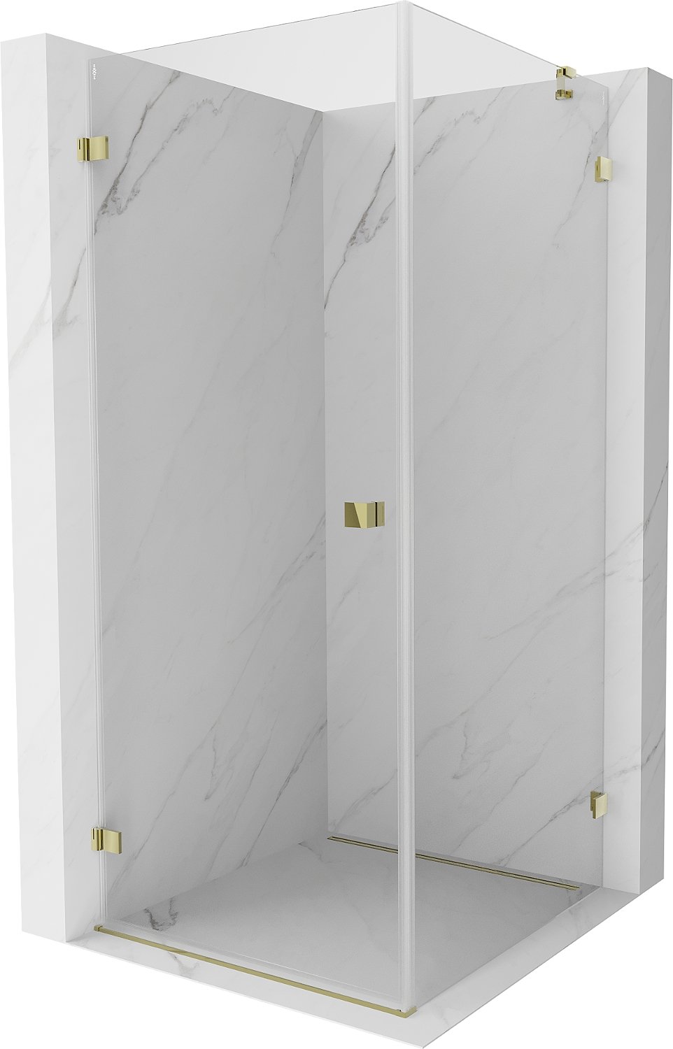 Mexen Lunar-B Duschkabine schwenkbar links 90 x 90 cm, transparent, gold - 832-090-090-50-00-L