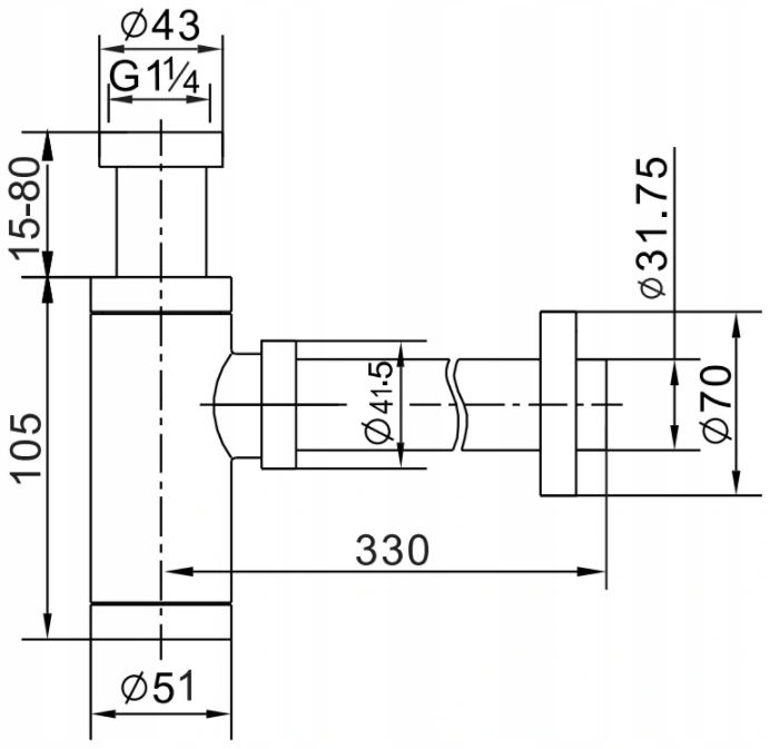 Der Siphon eignet sich für Waschbecken mit Montageloch für Gewinde ⌀40 mm (1 und ¼ "), dank der sich an die meisten Standardwaschbecken perfekt anpasst. Es bietet einen effektiven Schutz vor Lecks und effiziente Maßnahmen für lange Zeit.
