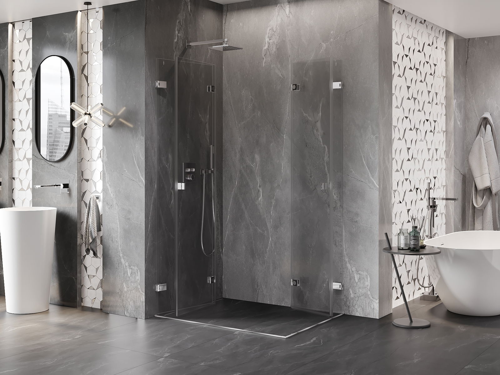 Die Möglichkeit, die Türen sowohl nach außen als auch nach innen zu falten, schafft mehr Raum, wenn die Dusche nicht benutzt wird. Dies ist die ideale Lösung für kleinere Badezimmer, da sie die verfügbare Fläche optimal nutzt.