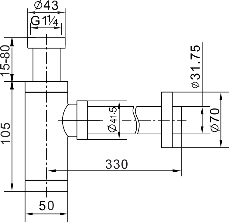 Der Siphon eignet sich für Waschbecken mit Montageloch für Gewinde ⌀40 mm (1 und ¼ "), dank der sich an die meisten Standardwaschbecken perfekt anpasst. Es bietet einen effektiven Schutz vor Lecks und effiziente Maßnahmen für lange Zeit.